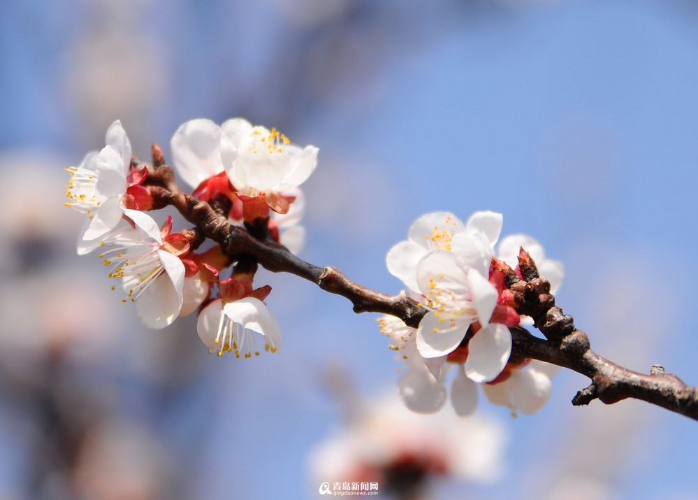 杏花花期集中在清明前后,花期10天左右,城阳、崂山北宅社区我乐村、北九水、李沧区百果山以及平度市植物园的杏花最为壮观。