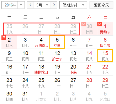 1、4月25~29日请五天假,加上周末、五一,一共10天。