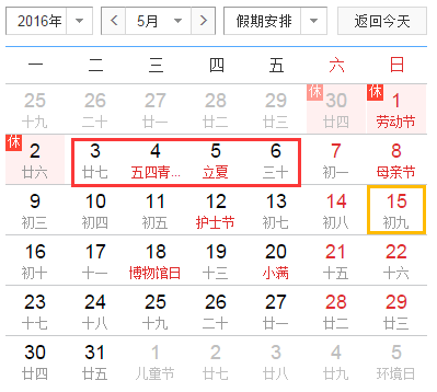 2、5月3日~6日请4天假,加上周末、五一,一共9天。