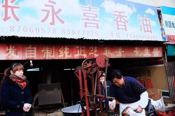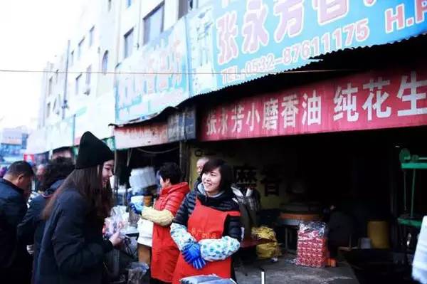 张家兄弟的香油铺在李村大集的东侧,在河道北侧就能看到“张永喜工作部”、“张永岭香油铺”、“张永芳香油坊”一排简陋的牌子,张家兄弟已经用这祖传的手艺在这里卖了三十年香油,而他们现在也是这集上的一块招牌,张家姐姐说“报纸电视台都来过,姑娘你是哪家的啊?”