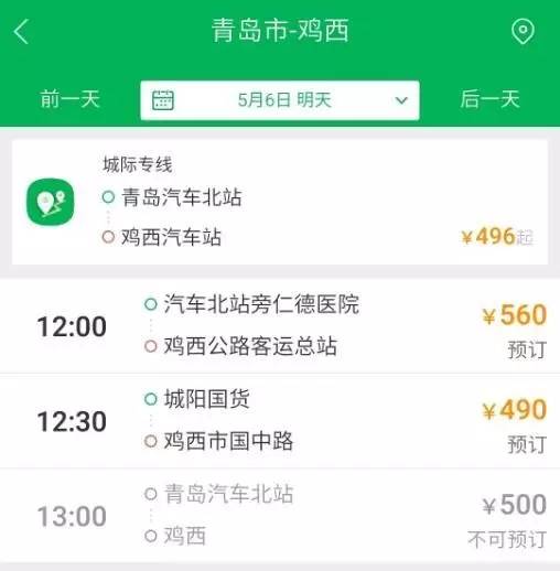 青报君特意下载了百度快行的app程序,在其中输入出发地“青岛”,目的地“鸡西”后,显示有三个班次,分别是12:00“汽车北站旁仁德医院至鸡西公路客运站”、12:30“城阳国货至鸡西市国中路”以及13:00“青岛汽车北站至鸡西”,只有第三个是车站内的正班班次,但是明明还有剩余车票,百度快行中却显示已售完。而其余两个均为车站内不存在并在车站外上车的班次却显示可以预订!