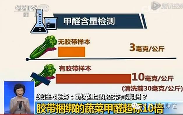 与胶带接触的蔬菜部分甲醛竟超标十倍!