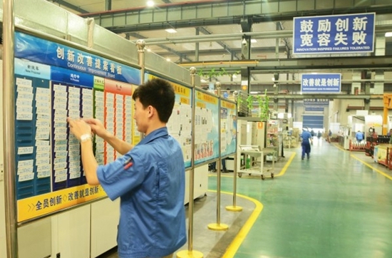 记者看到在公司的车间和办公场所都设有创新改善提案看板,张恭运介绍说创新提案的设立时为了让职工随时可以把创新改善的想法提出,由车间创新改善专员进行评价,并根据需要联合相关人员攻关实施。优秀的提案将上报到公司进行复审,复审通过后根据提案的贡献大小,给员工发奖金。未被推选到公司的提案,由车间根据提案的贡献纳入车间绩效考核。集腋成裘,小创新有大成就。仅2015年,豪迈集团全员创新改善提案达到88000条,创造价值7200万元,截至目前先后拥有150多项国家专利,有30多项新产品填补了国内空白。