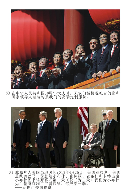 5、2013年4月,为美国前总统小布什私人图书馆开业,量身定制的3套西装,小布什先生亲发信感谢服装制作非常满意。(青岛新闻网记者 夏巧怡)