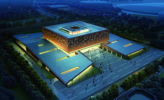 博物馆建筑体块由“鼎”字变换而来,