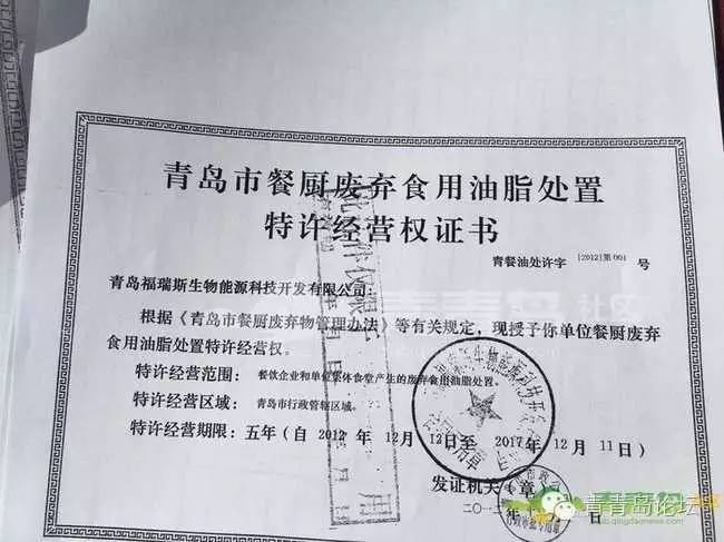 针对网友反映的情况,黄岛区食药监局立即派人进行了现场核查。经查,该车为经市环保部门批准、有废弃油脂回收资质的专用车(见图)。车上有市政统一安装的北斗卫星订位系统,与饭店、学校依法签订了废弃油脂回收废合同。经批准的企业回收油脂,用于制造香皂、生物燃油等工业原料。如有其它问题,可拨打12331咨询和投诉。感谢网友对食品安全工作的热心支持。