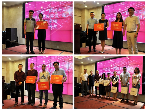 和融商城市场运营中心副总裁韩春龙先生与青岛和融电子商务职业培训学校校长冯婷婷女士协同“赞助商代表”共同向获奖企业颁发了奖品和奖杯;获奖企业组织和商家代表,纷纷上台与广大参会企业商家分享“互联网”经济为线下实体企业商家带来的好处。