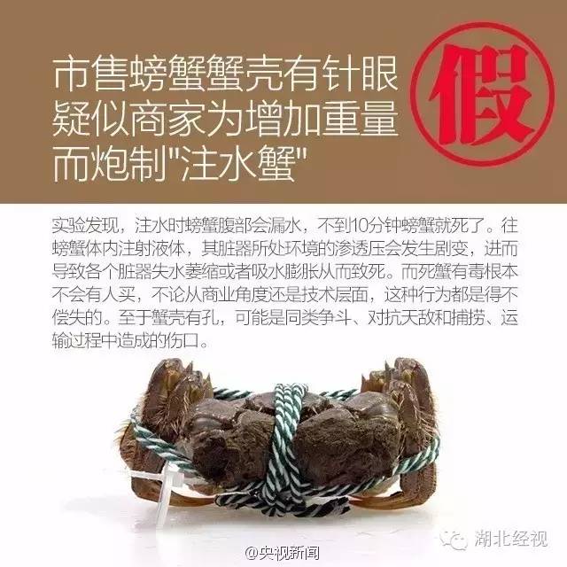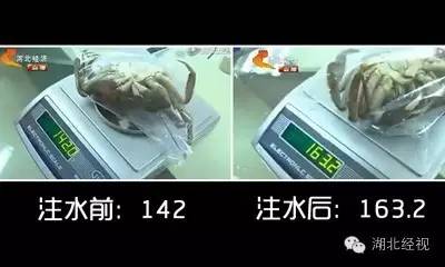 专家表示,其实售价高的螃蟹由于体内肉比较饱满根本注不进去水,而售价便宜的螃蟹虽然肉少壳空,但由于人工和时间成本问题也没有必要去注水。