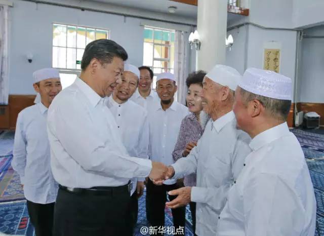 习近平总书记19日上午来到宁夏回族自治区银川市新城清真寺了解宗教活动开展情况。在礼拜大殿,习近平与宁夏伊斯兰教界人士亲切交流,通过他们向广大穆斯林群众致以亲切问候和良好祝愿。 习近平说,我国的各民族和宗教是在5000多年的文明史中孕育发展起来的,只有落地生根才能生生不息。习近平希望大家继续发扬爱国爱教传统,在脱贫致富奔小康的道路上发挥积极作用。在场的伊斯兰教界人士表示,将认真贯彻落实全国宗教工作会议精神,既念好古兰经,又念好致富经,为国家发展营造和谐的环境。