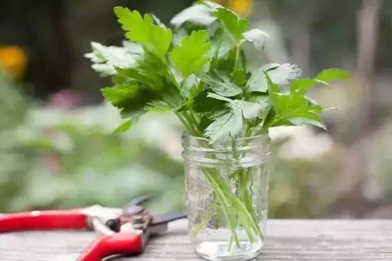 不喜欢吃香菜的人肯定不多,但是你知道香菜能水养吗?裁剪若干较嫩的香菜茎叶放在玻璃瓶中,瓶里盛放2/3的水。