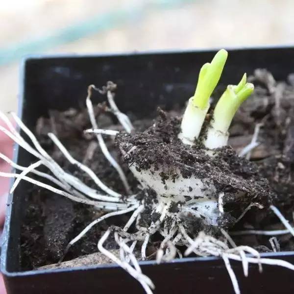 将根茎放到事先准备好的小花盆里,土壤只需漫过洋葱根茎1厘米即可。