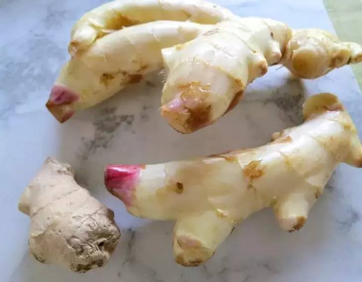 若生姜已发芽,从发芽处切开,可多切一点姜肉;若没有发芽,则将生姜放入水中,等待生姜发芽。
