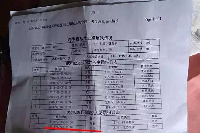 然后7月23日这天,这报考的这一批次的征集志愿下来了,这时候,他才惊讶的发现,征集志愿中,竟然有一个陕西师范大学免费师范生的名额。他的同学比他分数低,都被陕西师范大学录取了,而他的分数还要高一些,竟然没被录取,而且,根本就没有招满。学校没招满,还不录取分数足够的他,这是为什么?于是,他这才想起来去查阅自己的报考记录,结果让他大吃一惊。他根本就没有报陕西师范大学,他的记录,被改成了鲁东大学的体育休闲教育专业。