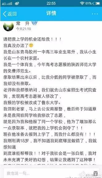 最初的信息,来自这位叫做常升的考生个人的哭诉!
