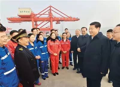 1月4日至6日,习近平在重庆调研。这是1月4日下午,习近平在重庆两江新区果园港与现场作业人员亲切交谈。新华社记者李 涛摄