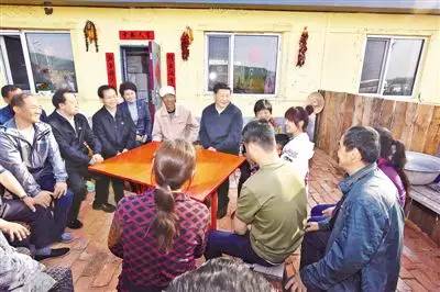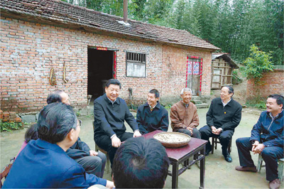 4月24日至27日,习近平在安徽调研。这是4月24日下午,习近平在六安市金寨县花石乡大湾村向村民们了解脱贫工作情况。新华社记者李学仁摄