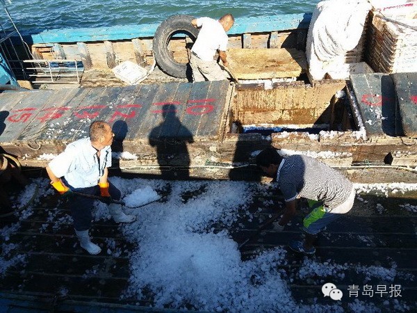 前日早上7点多,青岛沙子口国家中心渔港码头上,数百艘大大小小的渔船停靠在码头上,很多渔民在忙碌,有的在向船上运送网具和生活用品,还有的已经开始提前将冰块装进船舱内,用棉被盖住,以备3天之后出海所需。