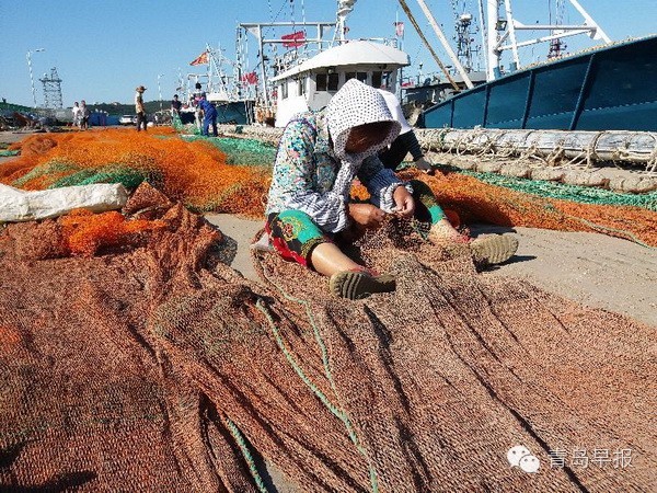 记者沿崂山沙子口国家中心渔港向北到即墨渔村码头进行探访发现,沿海渔民忙碌着为开海“备战”,众多渔民纷纷补网修船,准备9月1日这天驾船出海。