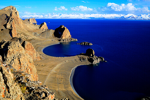 “纳木措”藏语意为天湖,位于西藏拉萨市当雄县和那曲地区班戈县之间, 呈长方形,东西长约70千米,南北宽约30千米,总面积1920平方千米,环湖公路长约380千米,湖面海拔4718米,是西藏三大圣湖之一,中国第二大咸水湖、世界海拔最高的咸水湖,被中国国家地理杂志评为中国最美湖泊之一!纳木措是藏传佛教信仰者向往的圣湖,也是西藏苯教的圣湖。转湖一圈等于念一亿次六字真言。纳木措属羊,每逢藏历羊年转湖者更是络绎不绝。念青唐拉是创世九神之一,其妻纳木措是十二尊护卫雪域的永宁地母之一,纳木措国家公园(班戈)北部核心景点圣象天门是他们举行婚礼、见证永恒爱情的神圣之地。纳木措国家公园湖边建有四座寺院,东部扎西寺、南部古琼寺、西部多加寺、北部恰多寺,象征佛教上所说的愠、怒、权、势。这里是集自然生态观光、羌塘民俗文化体验、宗教文化探秘、徒步登山探险、独特艺术创作于一体的西藏最著名的旅游目的地之一。纳木错,藏北高原的圣湖,她承载着人类无数世俗的梦想和历史久远的宗教情怀,围绕着她转上一圈,就会享有无限的安乐,就会分享她的法力和功德,就会完成世人心中美好的祈愿。月亮湾旁,画出生命的轮回,圣象天门,祈福人生的吉祥;圣湖三石,见证民族的伟岸;圣地半岛,奏响华美的乐章;千年古寺,延续信仰的忠诚;古老传说,承载美好的希望;追寻神山圣湖是我一生的期盼;追寻藏游天堂是我一生的理想;欢迎您,远方的客人,扎西德勒,幸福安康;祈福您,尊贵的朋友,扎西德勒,幸福吉祥!