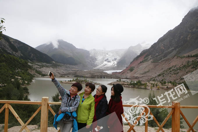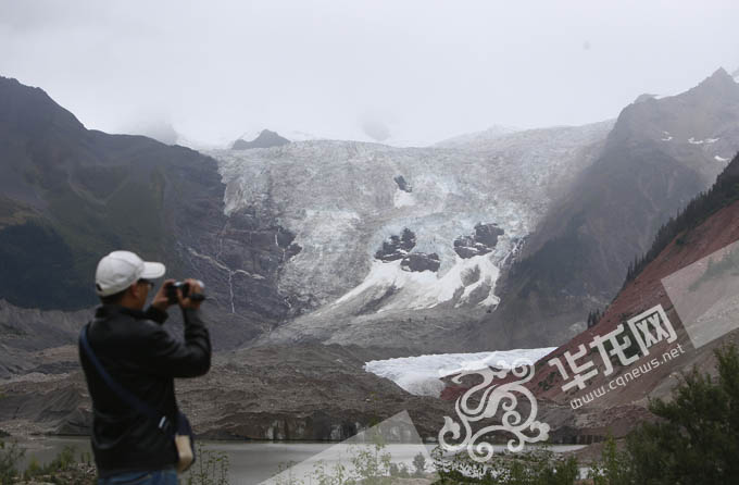 米堆冰川的美景吸引了不少游客慕名而来。 特派记者 李文科 摄