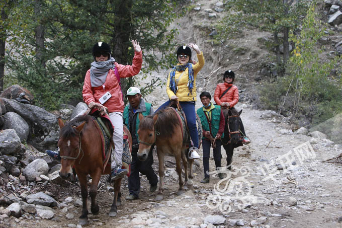 游客的需求,给村民带来了致富希望。全村44户村民,全部成为现代马帮,每天100多匹马轮流驮着游客在景区往返。记者在景区采访时,不少游客骑在马上,快乐地挥手示意。每匹马每次驮游客,收费100元,算算看,这笔收入是不是可观?次旺曲配一家靠马的收入有几万元。