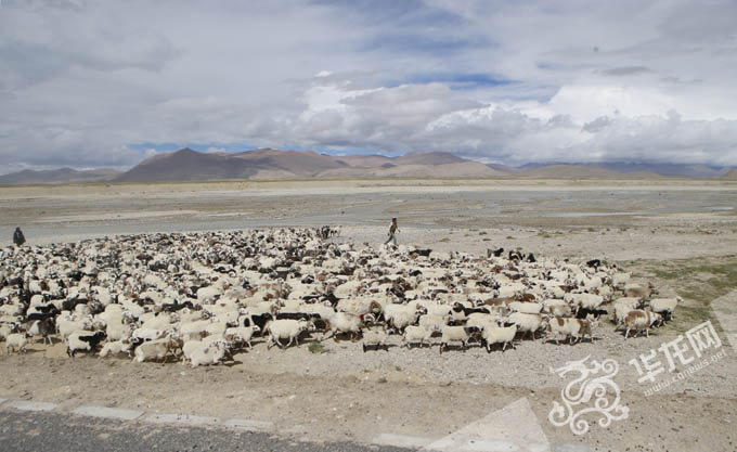 成群的羊儿在蓝天白云下奔跑,蔚为壮观。 特派记者 李文科 摄