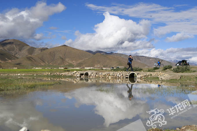 蓝天白云倒映在水中相映成趣。 特派记者 李文科 摄