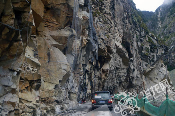 在一处地名叫英雄沟的地方仅能容一辆车通过,险象环生。 特派记者 李文科 摄