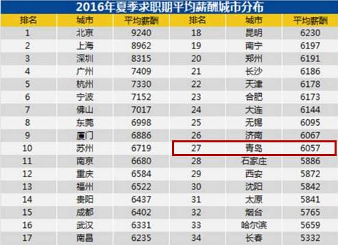 2016年夏季求职平均薪酬城市分布那张魔性表
