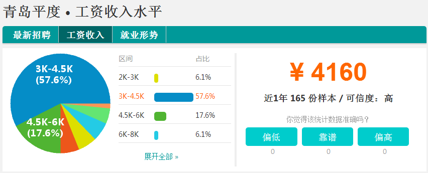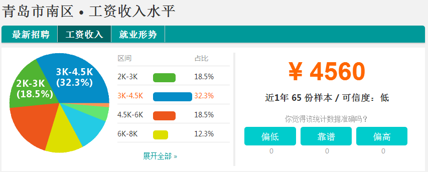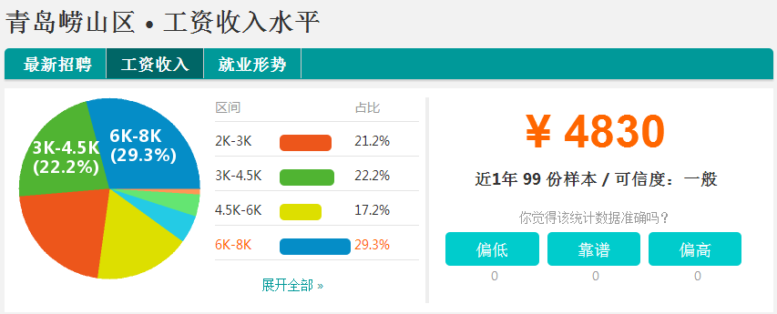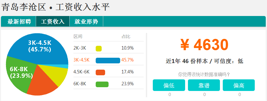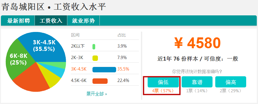 城阳区的平均月薪4580元,