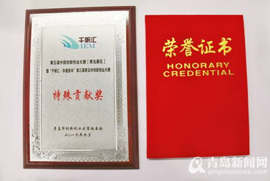 青岛新闻网讯 9月20日下午,由科技部火炬中心指导,青岛市科技局,青岛市财政局、青岛市教育局、青岛市工商联共同主办,由青岛市广播电视台、青岛日报、青岛创客全媒介平台、青岛华通集团特别支持、由青岛黑马创业服务有限公司、青岛市孵化器协会、青岛是市产力促进中心共同承办的以“创业青岛孵化梦想”为主题的第五届中国创新创业大赛(青岛赛区)暨“千帆汇•华通资本”第三届青岛市创新创业大赛获奖成果展、终极PK赛及颁奖仪式,在青岛大学国际学术交流中心举行。市科技局姜波局长,青岛华通集团邓力总经理等相关领导出席了本次大赛。青岛市创新创业大赛组委会授予华通集团“特殊贡献奖”。