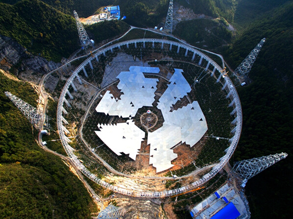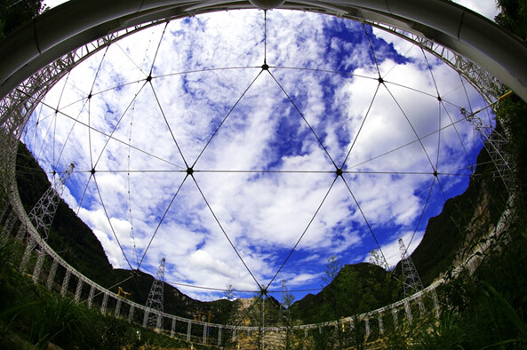 从“天眼”底部的大窝凼洼地向上仰望望远镜的框架结构