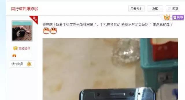 9月18日凌晨,百度贴吧网友@吉娃娃你 在三星NOTE7吧发帖称,他手里的蓝色三星Note7发生了爆炸事故!