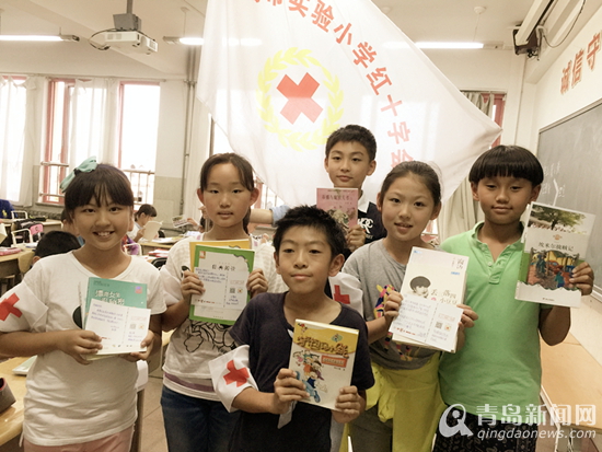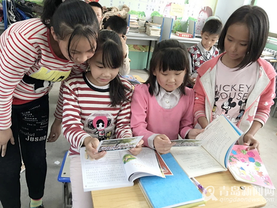 青岛市实验小学五年级六班的全班同学们一起捐书