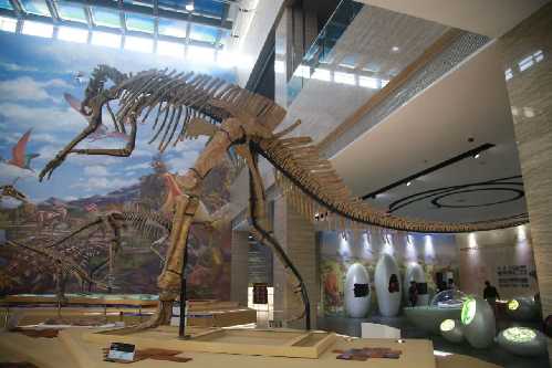 据讲解员介绍,莱阳是新中国第一龙——棘鼻青岛龙发现的地方。1958年毛泽东主席参观了中国科学院古脊椎动物与古人类研究所成果展,其中主要展示的就是刚刚研究命名和装架而起的新中国第一龙。莱阳还发育非常奇特的平原恐龙峡谷群,莱阳也是中国古脊椎动物学会的诞生地。莱阳是真正的“白垩纪公园”。莱阳发现的许多恐龙类型是“侏罗纪公园”到“侏罗纪世界”系列电影中的恐龙明星。