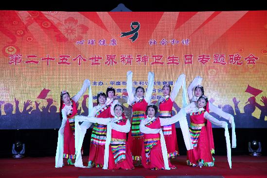 据悉,全球约有4.5亿人患有不同程度的精神或行为障碍。其中,超过3.5亿人患有抑郁症,约2100万人患有精神分裂症。仅在中国就有超过1亿人患有精神疾病。该场晚会专题活动是精神病防治医院文化、精神风貌和个人修养的一次集中体现。在呼吁人们要提高心理健康意识和心理调试能力,重视精神卫生工作的同时,倡议大家要保持开朗的心情、甜美的微笑,以积极的态度面对生活,参加体育锻炼,保持身心健康,协调成长,关注自己的他人,在善于分享中走出一路芬芳。(陈婧 葛彩英)