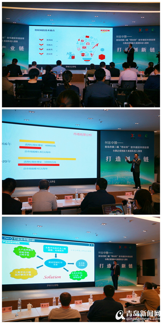 本次大赛得到了各方优秀创业团队的广泛支持,从市南区、市北区、崂山区、李沧区、黄岛区、高新区、城阳区、胶州市、即墨市、莱西市、平度市,七区四市共征集100多个项目,经过10月11日的团队组海选赛, 21个项目脱颖而出,入围当天的比赛。