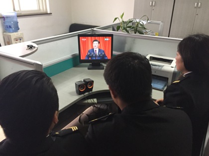本网讯 10月20日上午10时,交运集团北方公司组织在岗的党员及团员青年共同收看了红军长征胜利80周年大会的实况直播,一同深入学习习近平总书记重要讲话精神。