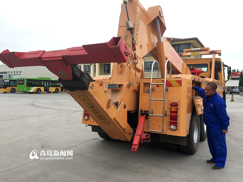 据城阳巴士分公司保修厂负责人介绍,不同于普通燃油、燃气公交道路清障车,根据纯电动公交车的底盘构造以及车重较大等特点,新上路的新型纯电动公交道路清障车除了配备常规的警灯、警笛、双闪灯和全套随车工具,该车车重、马力更大,后托臂长度更长达4.5米,实行拖车作业时,采用将故障车前轮抬起的方式,这样行驶起来更加安全、稳固。