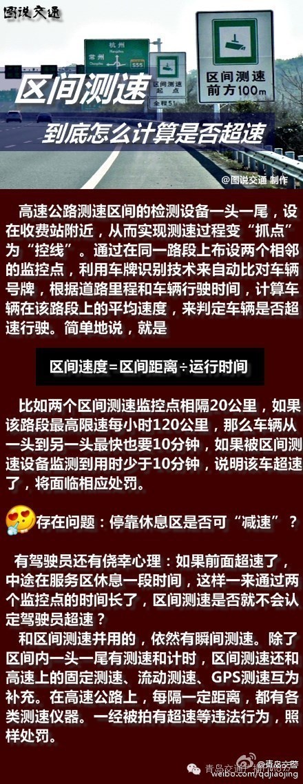 据了解,该处区间测速全长4.3千米,区间测速为80千米每小时。
