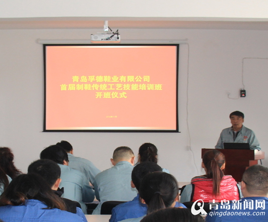 青岛新闻网讯 为传承孚德传统制鞋技艺,弘扬工匠精神,2016年11月16日,青岛孚德鞋业首届制鞋传统工艺技能培训班正式开班,开班仪式在公司新落成的培训中心举行。