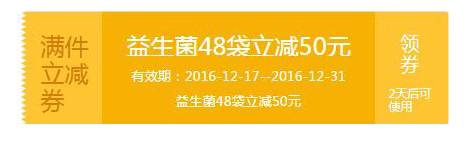 另外其他所有参与活动的网友均可凭活动页面上的合生元产品电子代金券一份,可去任意销售合生元产品的门店购买合生元产品(益生菌48袋)时使用,面值50元。