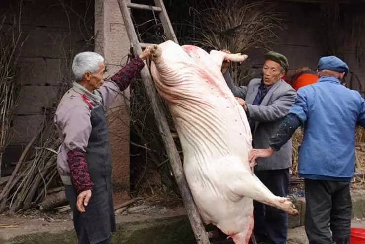 现在自己杀的比较少了,都是去买猪套餐,请注意,为什么是套餐。因为有猪肉、猪头、猪蹄子、猪尾巴基本几样要齐备的,到时候是要上供祭拜老天爷的(祭拜完毕后才会吃掉)