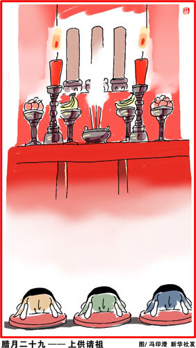 腊月廿九,上坟请祖上大供。对于祖先的崇拜,在我国由来已久。