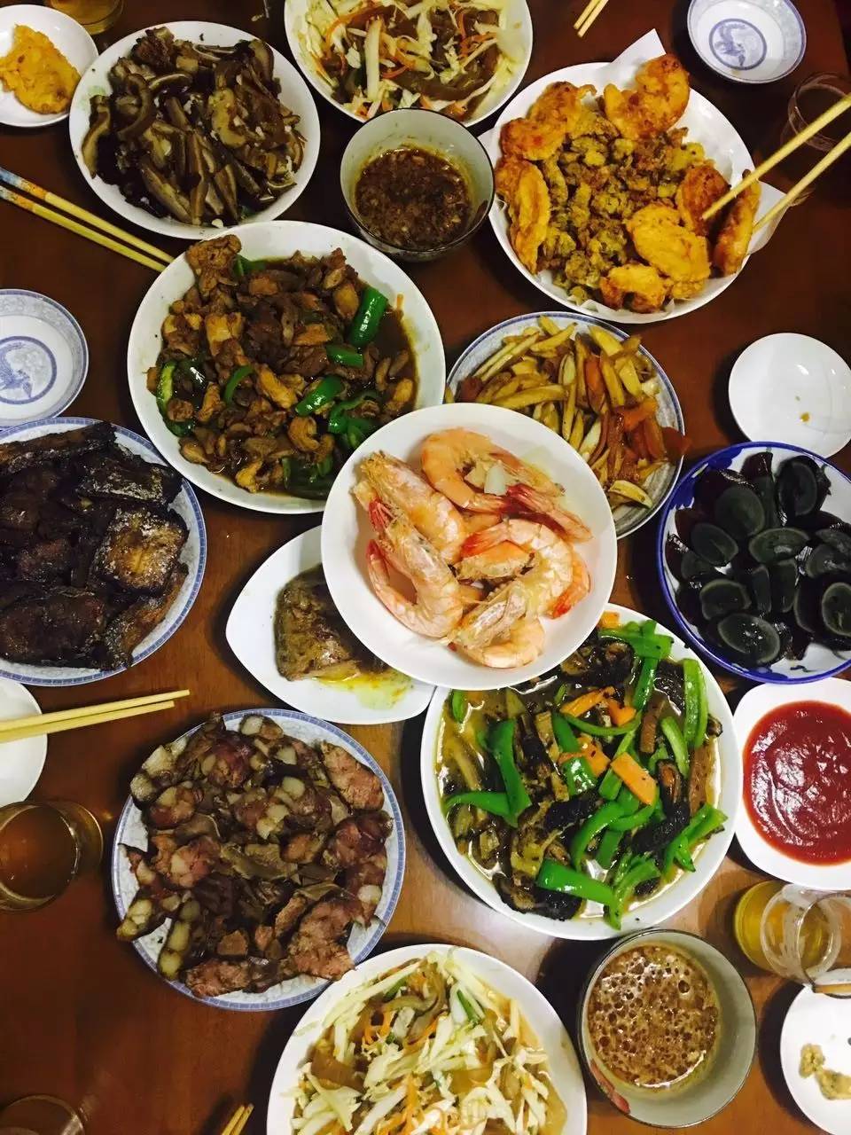 这桌饭爷都快看不到头了……好大的一家子啊,还能聚在一起真幸福~