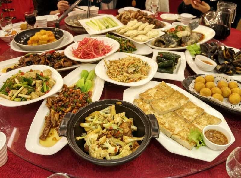 似乎是在饭店吃的年夜饭,但也很有年味哦~