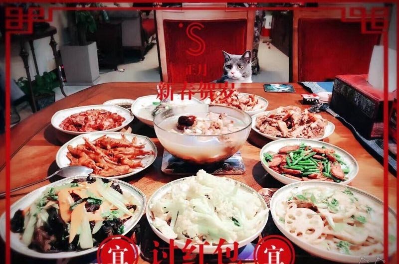 丰盛的年夜饭,饭爷也想跟着吃肉!