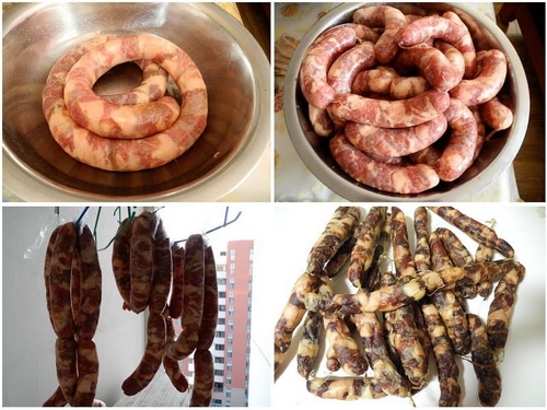 到腊肠摸起来比较结实,里面稍微稍微有一点点弹性,就算做成功啦。通常需要15天—20天。