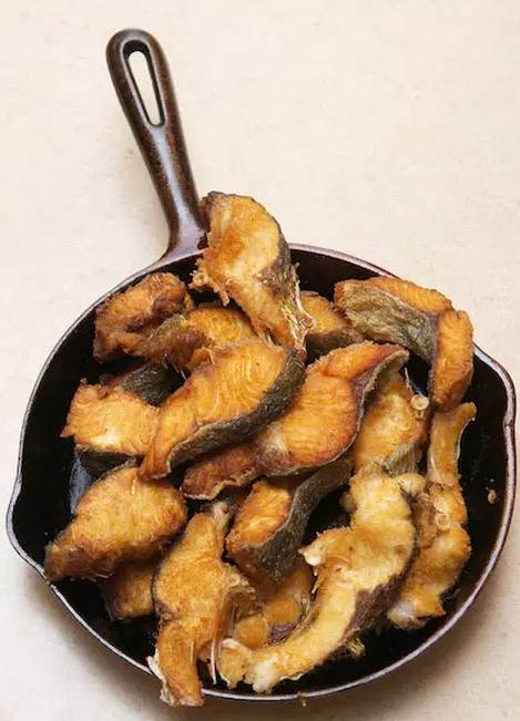 将鲅鱼片用油煎炸至两面呈金黄色时捞出。 第五步:腌制