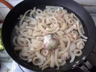 将猪皮放锅里,加大约6倍到7倍的清水、加葱姜。大火烧开,小火慢熬,约1.5小时。